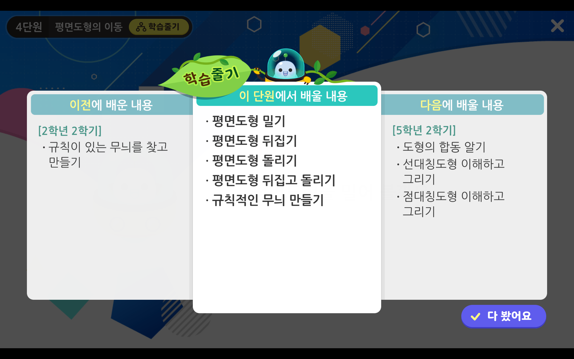 머리속에서 도형이 어떻게 이동되는지 그려보는 시간이 될 거예요!