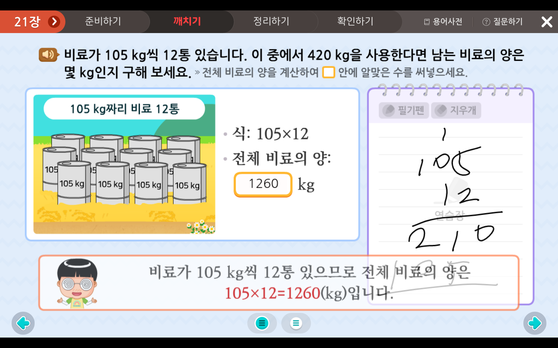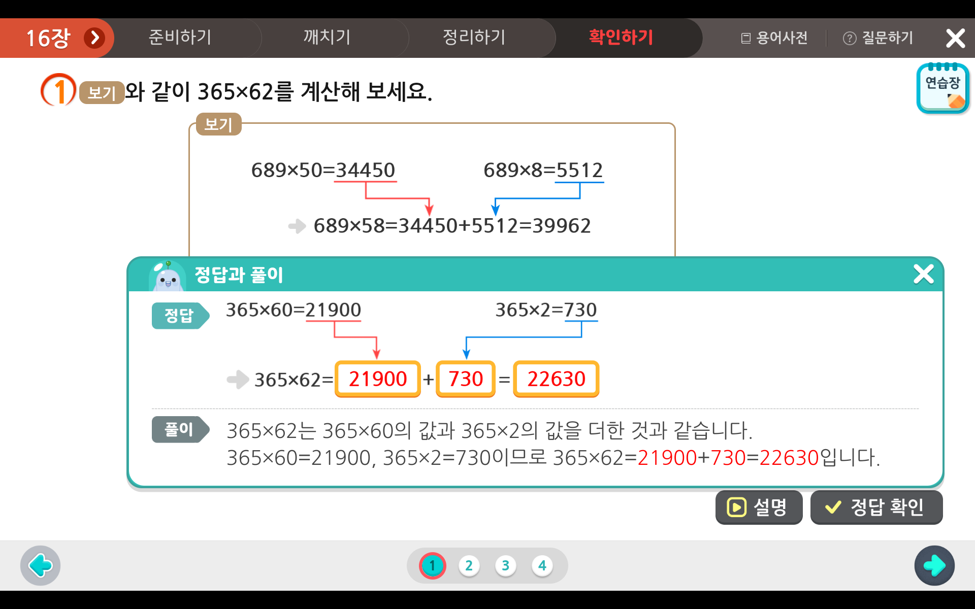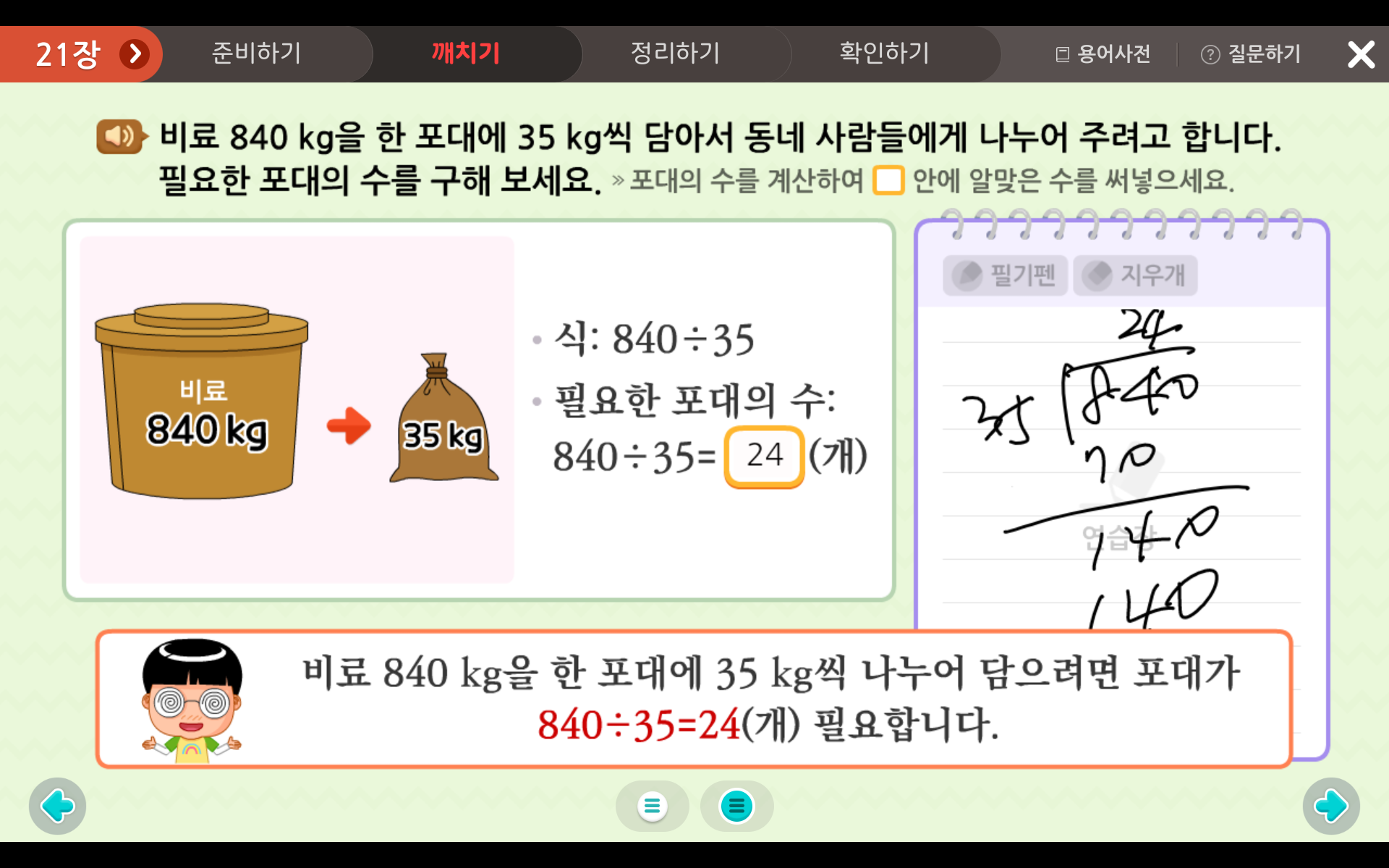 아래 문제와 같이 다양한 문제풀이를 통해 곱셈과 나눗셈에 대해 익숙해 지는 것이 수학 실력 향상의 비결이랍니다!
