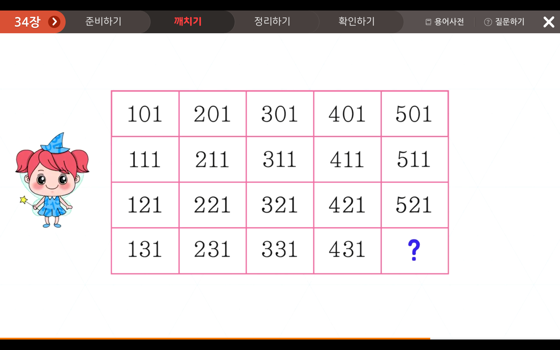 이러한 규칙을 바탕으로 4행 5열의 ?에 들어갈 숫자는 무엇일까요?