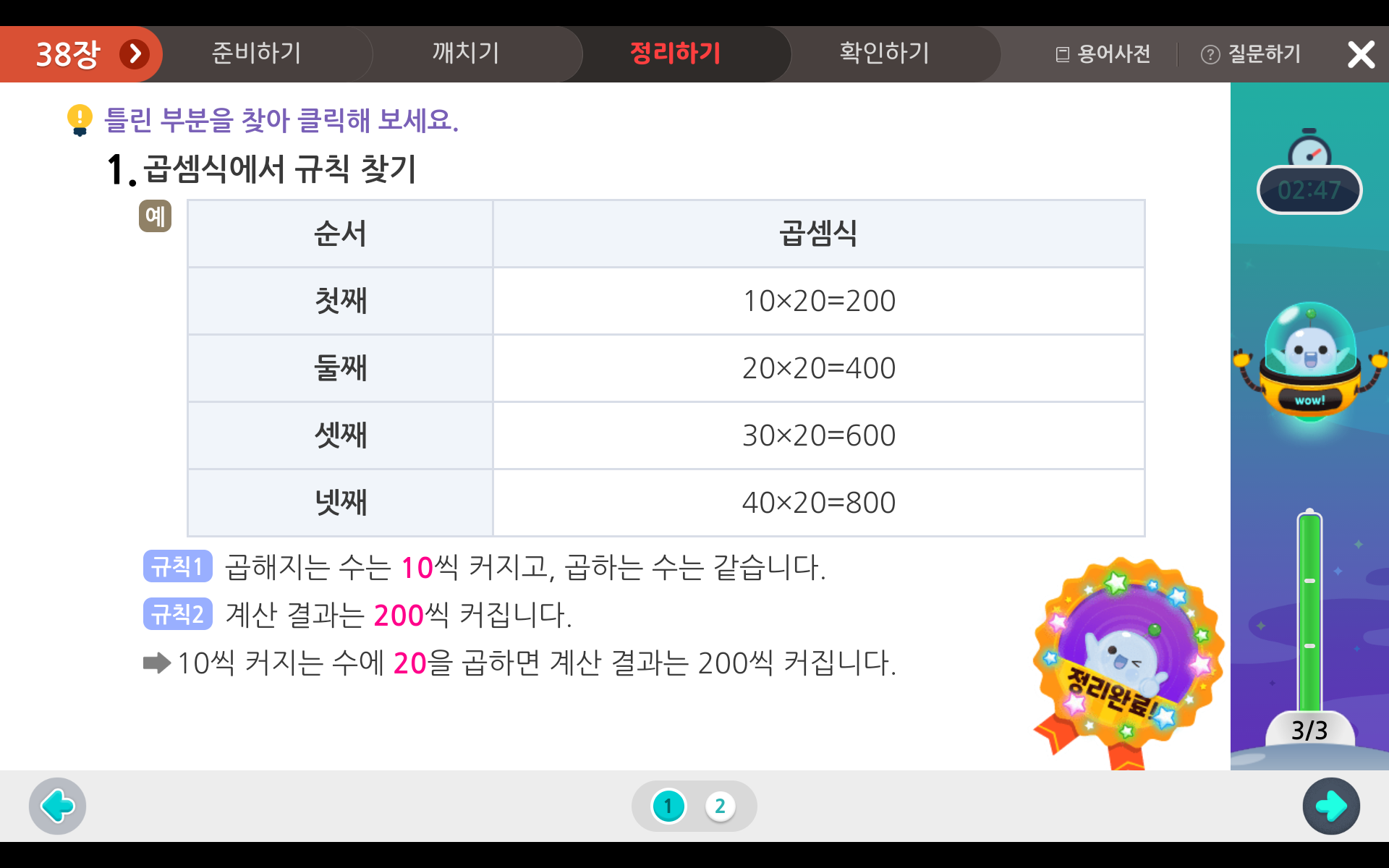 곱셈식과 나눗셈에서 규칙을 찾는 방법은 곱셈과 나눗셈으로 바뀌었을 뿐,