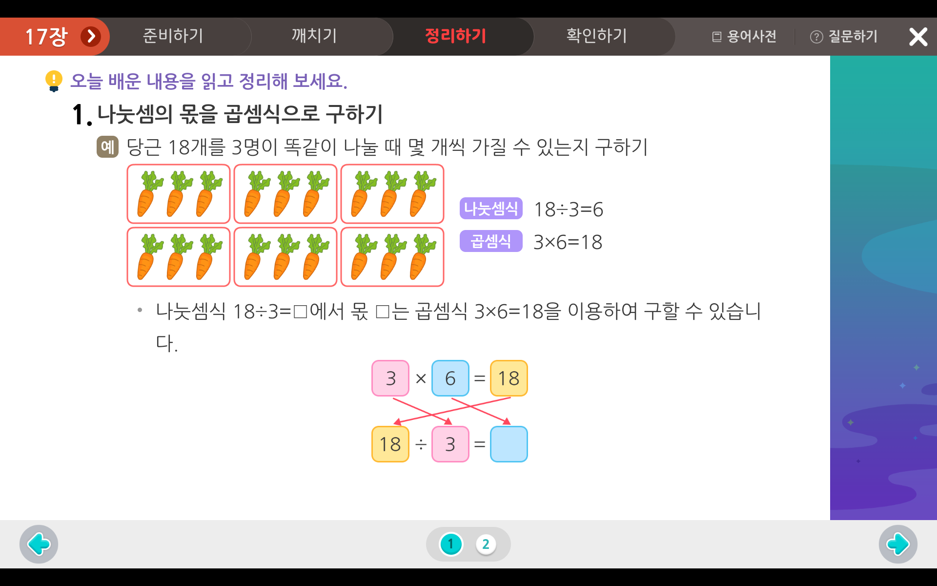 지금까지 3학년 1학기 수학 3단원 나눗셈을 공부했습니다.