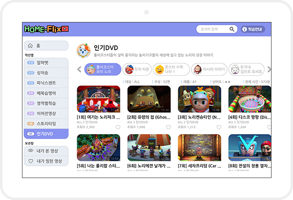 ▶ 홈런의 '홈플릭스' 콘텐츠로 동요부터 인기DVD까지 영어로 보고 듣고 즐기는 영상 학습