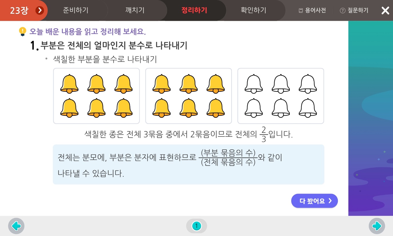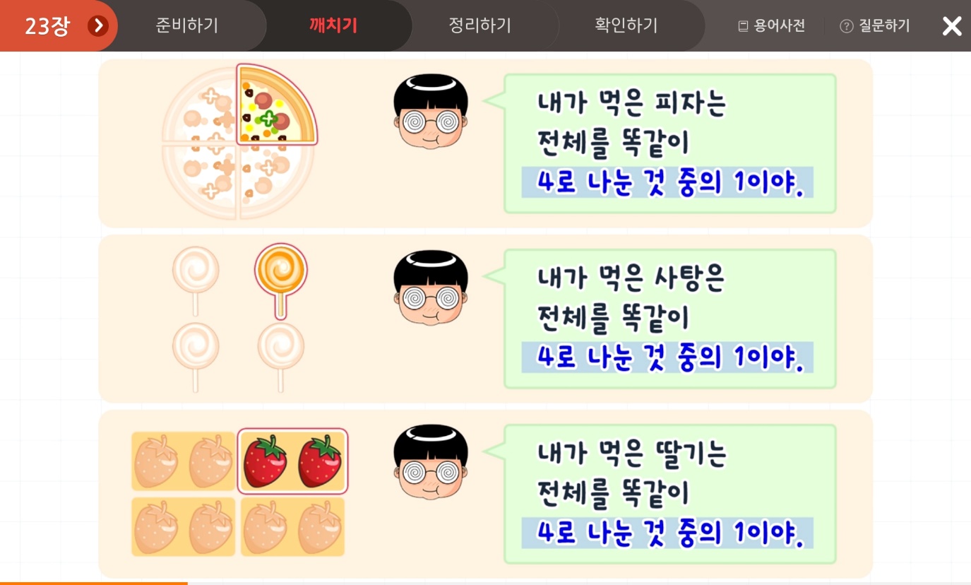 분수를 처음 배울 때 개념을 정확하게 이해해야 응용 문제가 나왔을 때 당황하지 않을 수 있겠죠?