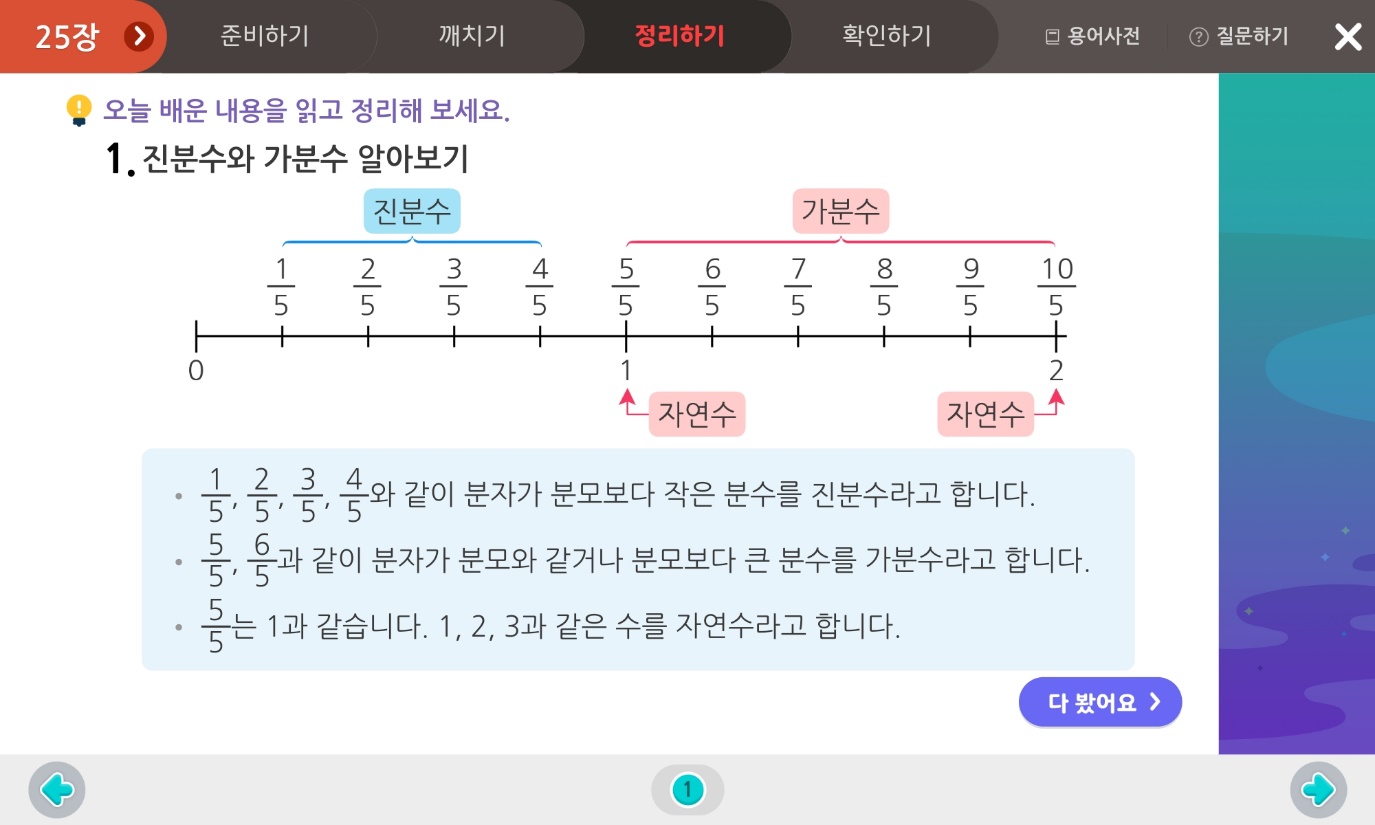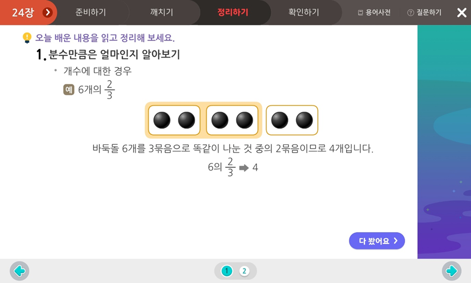 지금까지 3학년 2학기 수학 4단원 분수에 대해 배웠는데요.