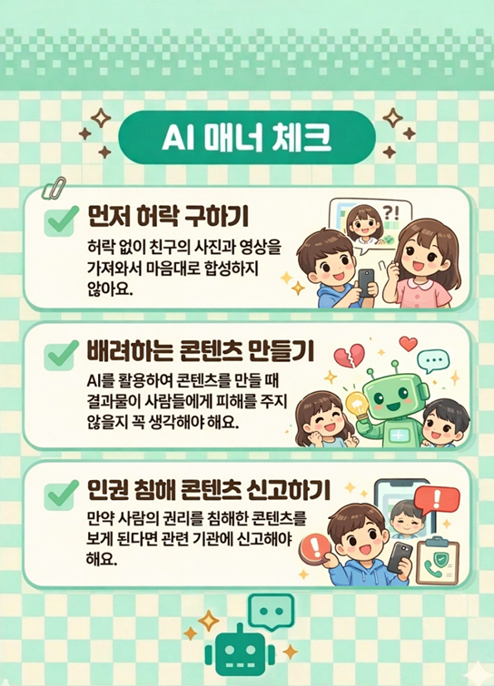 우리도 서로를 존중하며 인공지능 기술을 사용해야 한답니다.